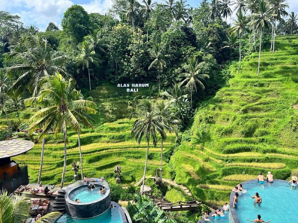 ▲ 梯田(Alas Harum Bali梯田):一片綠意盎然的梯田景觀,層層疊疊的田壟沿山而建,搭配椰樹與村落,盡顯峇里島田園詩意。漫步其間,可感受傳統農耕文化與自然的和諧。