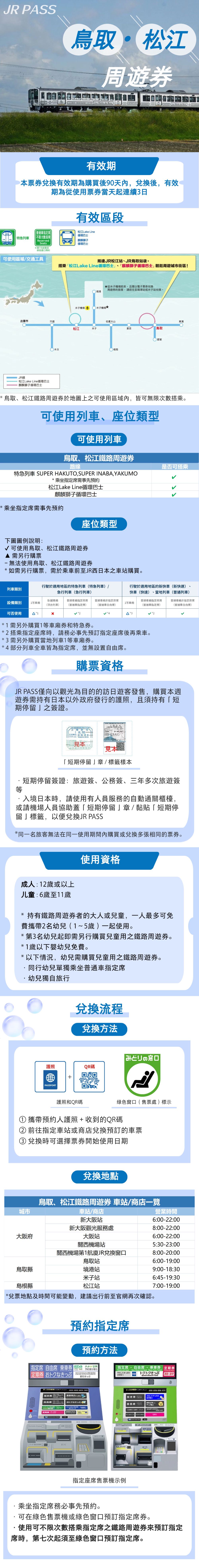 - JR PASS 鳥取・松江區域鐵路周遊券