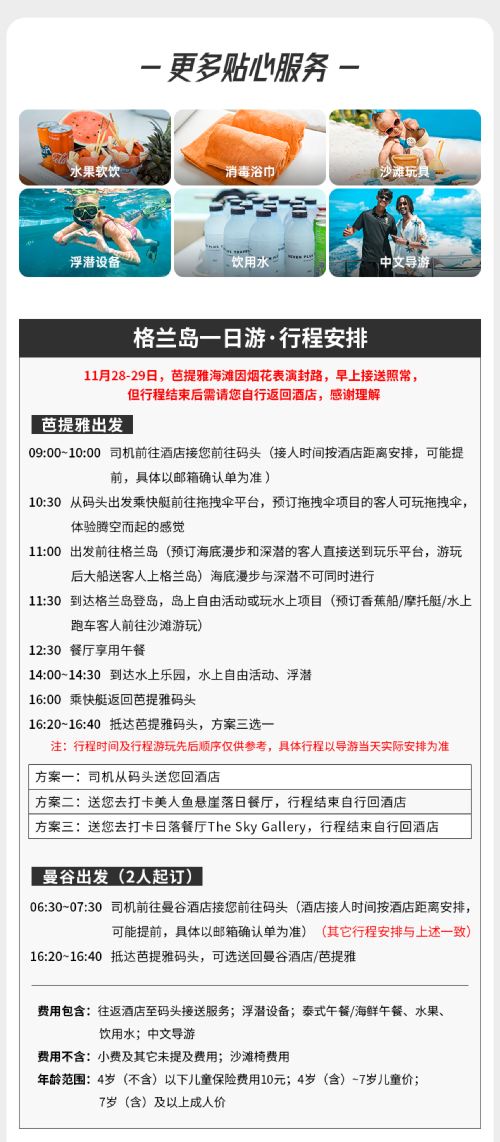 送回曼谷市區酒店,泰國交通容易擠塞,酒店遠近不同,同時受天氣/風浪/交通等不可抗力因素影響,抵達酒店的具體時間會略有不同,請以實際情況為準~