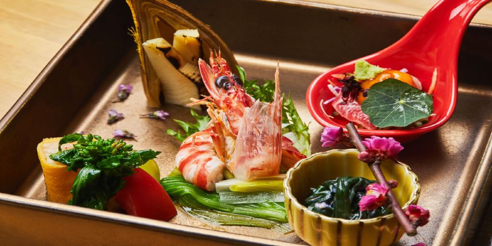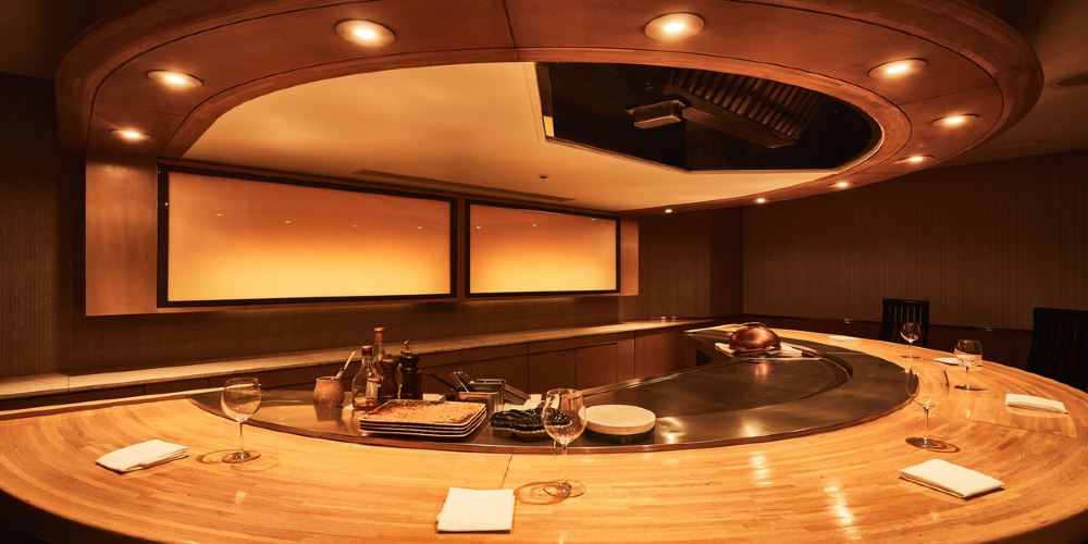 位於飯店中特別的私人空間「鐵板懷石Rindou」,在您面前為您料理以熊本品牌黑毛和牛「和王」為中心的美饌,以及熊本縣產海之幸、大地之惠。鐵板燒烤滋滋作響的聲音及香氣,在您面前展現的臨場感正是吧台座位獨有的魅力所在。請以五感盡情品味料理!