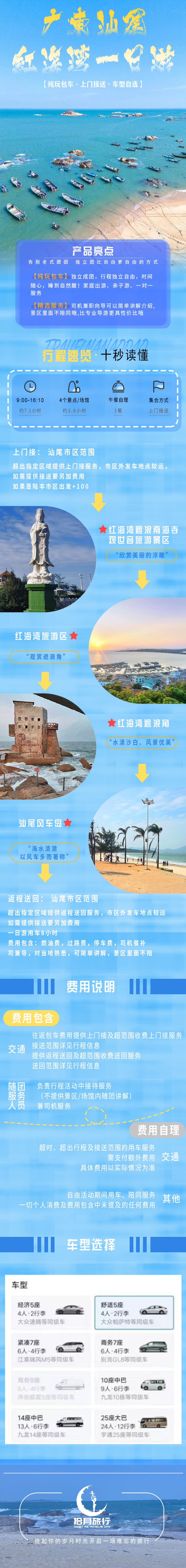 15:10 於汕尾 城區下車 指定區域以外提供接送服務,需額外收費 全日用車8小時內,逾時服務費每小時50元,大型車輛則為每小時80元,可直接支付予司機。一般情況下不會出現逾時,遊玩時間以客戶自行停留為準!