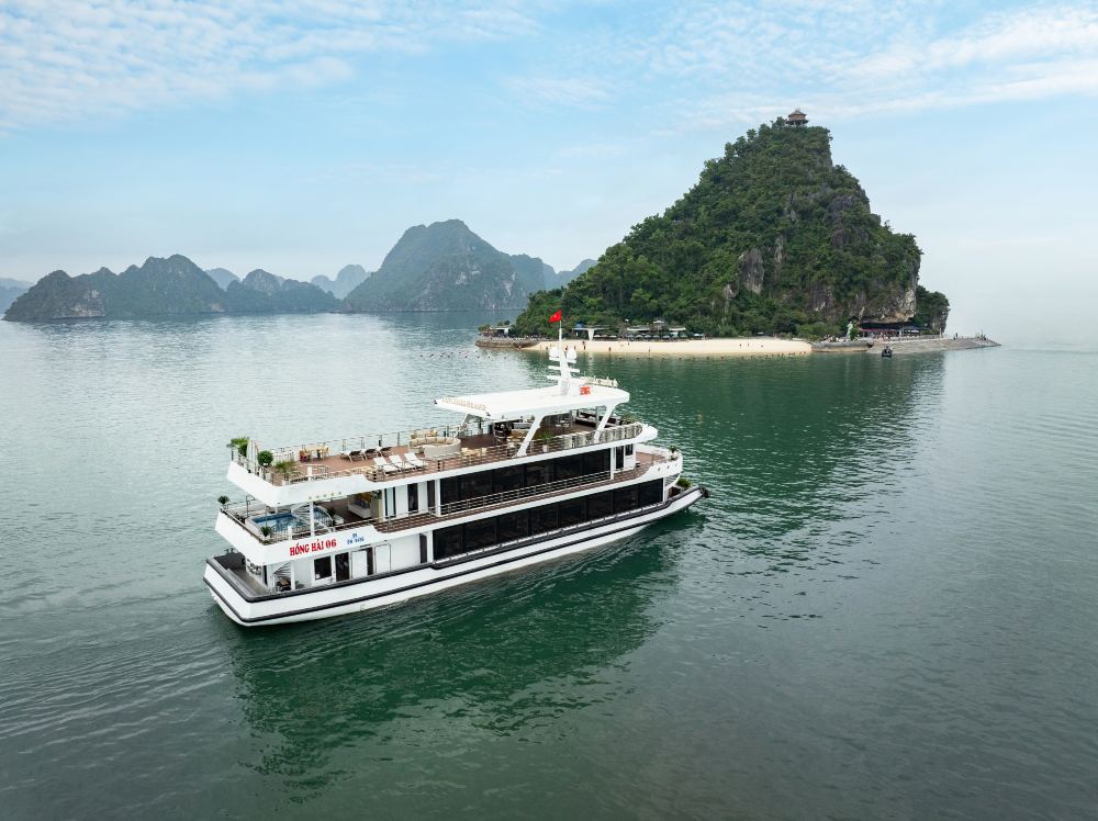 郵輪從團洲港出發,展開一段愉快的旅程,探索聯合國教科文組織世界遺產下龍灣的美景。沿途您將欣賞到傳奇海灣的壯麗景色,數以千計的石灰岩島嶼,包括狗石、鴨石,尤其是拇指石——一座從海中升起、形似巨大拇指的美麗石灰岩小島。