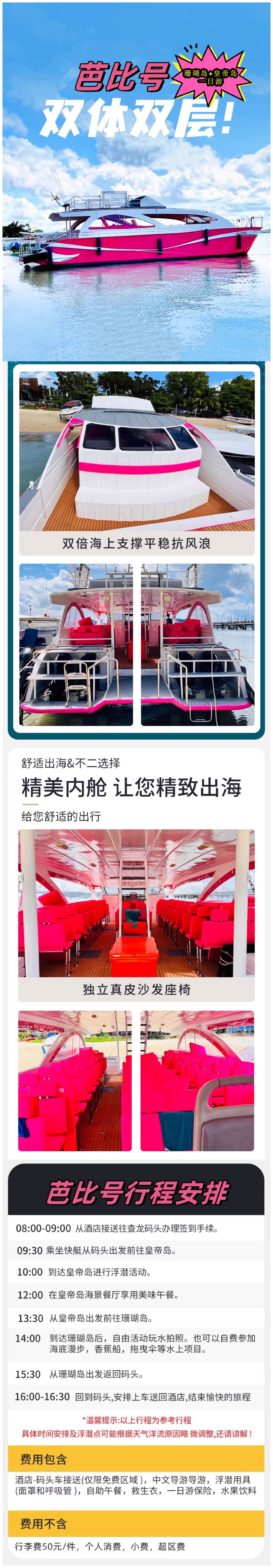珊瑚島 入內參觀 含門票 無需預約 船型遊船類型雙體快船,船號遊船名稱芭比號