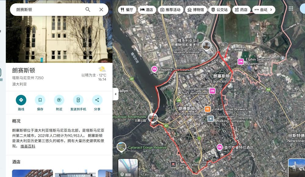●紅線範圍內為朗塞斯頓市區範圍參考,是否可接送以及具體接送地址以景區確認為準(8:30前到達航班可諮詢客戶服務支援是否能夠接機,如需接機請補差付費)