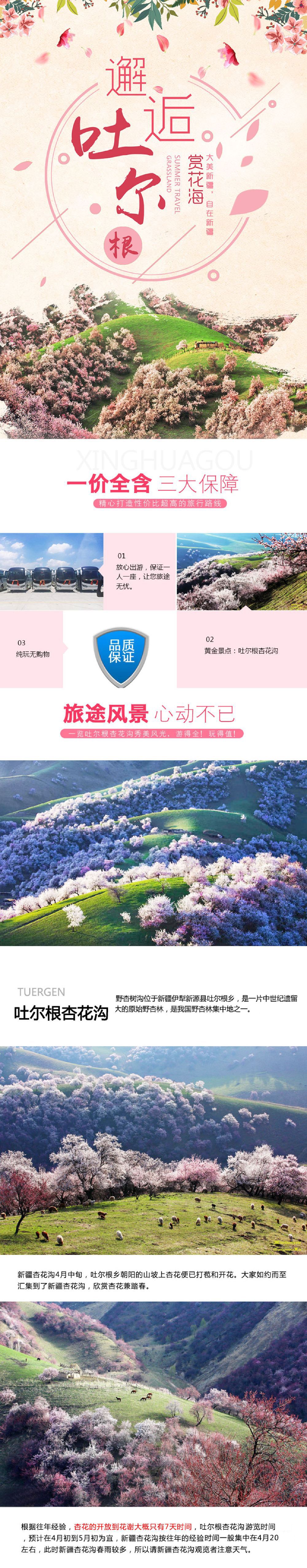 沿途欣賞鞏乃斯草原的濕地風光。中午在吐爾根享用午餐後遊玩吐爾根鄉野杏林,拍攝美景。交通
