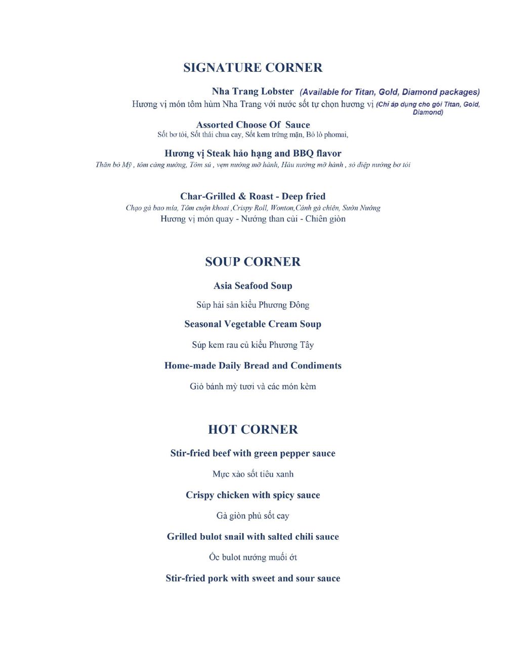 - 海鮮自助餐包含套餐:銀卡、鈦卡、金卡、鑽石卡