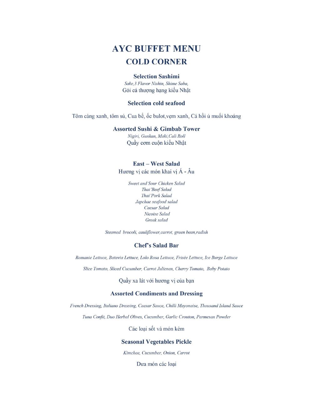 AYC 自助餐菜單