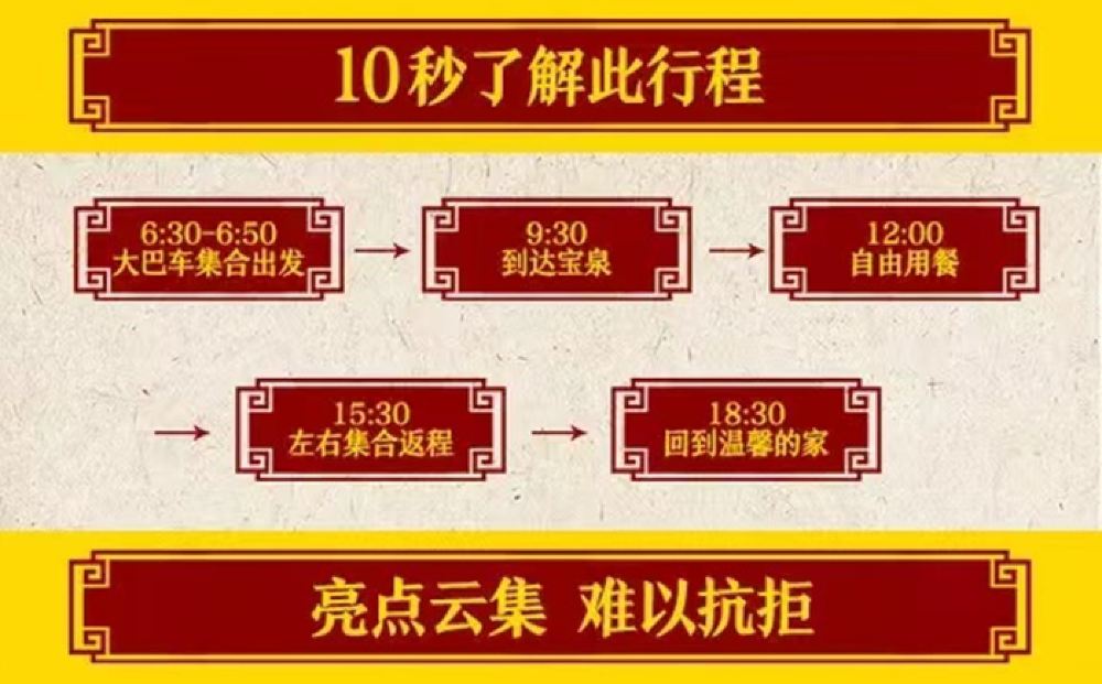 在集合地點集合07:00 新密 新密東郡一品轉盤 集合 具體地點時間以導遊通知為準(具體時間地點以當天實際情況為準,平台顯示時間僅供參考),導遊會在出發前1天下午19點左右通知,20點前沒有接到通知請及時聯繫客戶服務支援