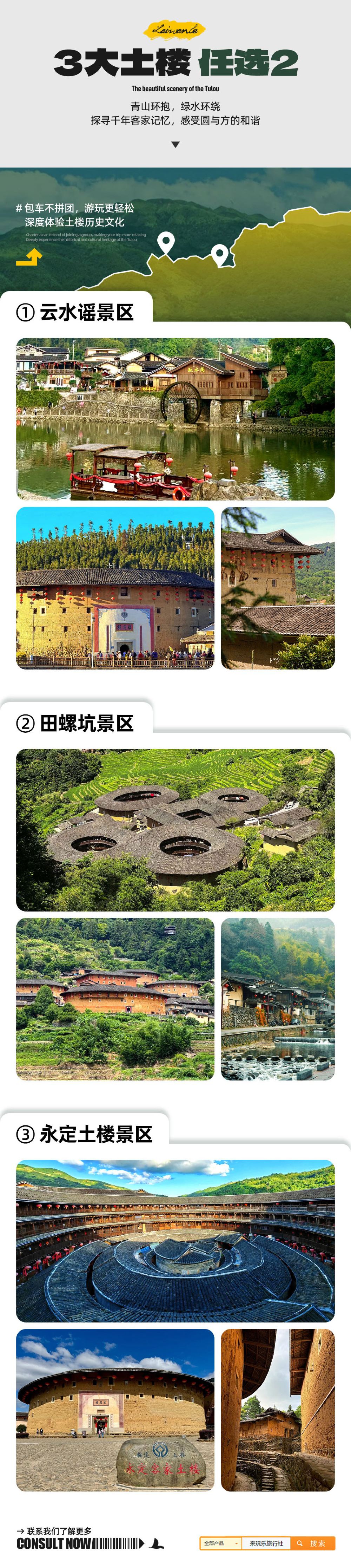 雙土樓範圍雲水謠|永定土樓王|田螺坑【三大土樓任選二】
