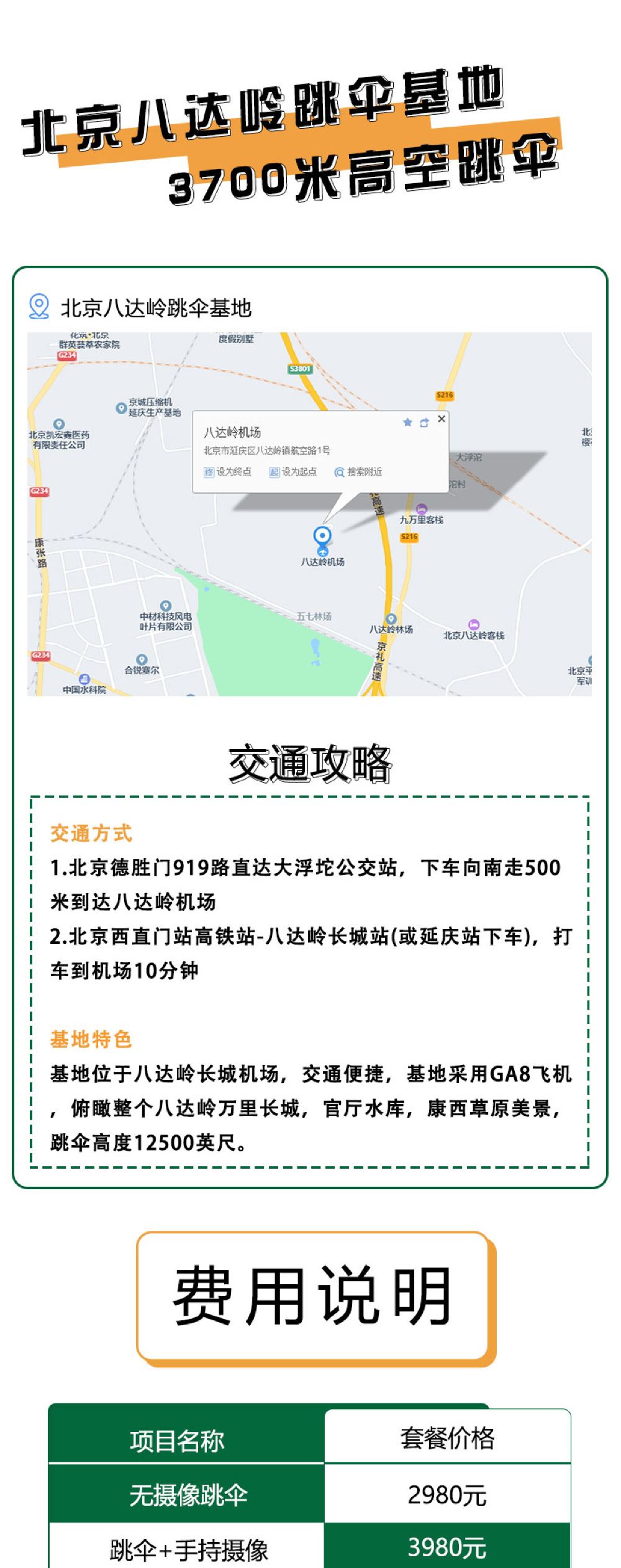 北京八達嶺高空跳傘【3700米自由落體+俯瞰八達嶺長城+專業高清視頻拍攝+視頻剪輯】