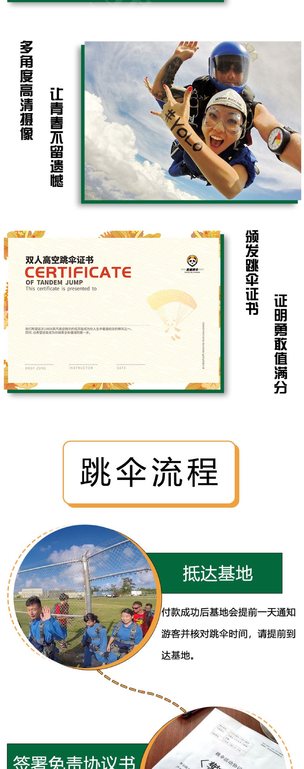 3. 請在預訂時間準時到達跳傘基地,憑本人有效證件(身份證/護照/軍官證)開始活動;