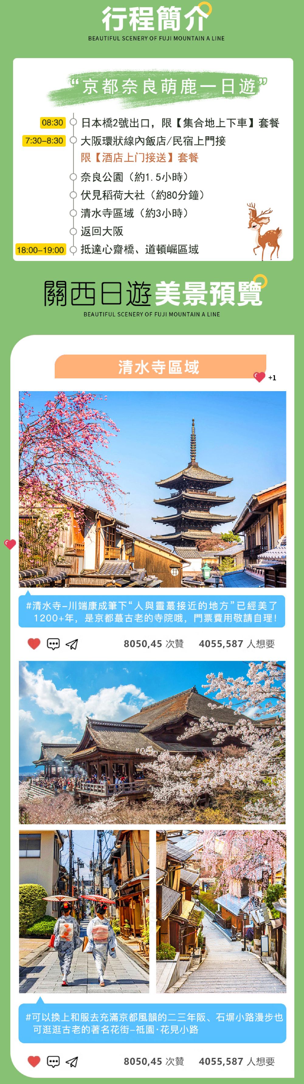 - 【純玩無購物】一天之內遊遍關西精華,去清水寺懷古,稻荷大社見鳥居,奈良公園喂萌鹿,京都奈良不留遺憾