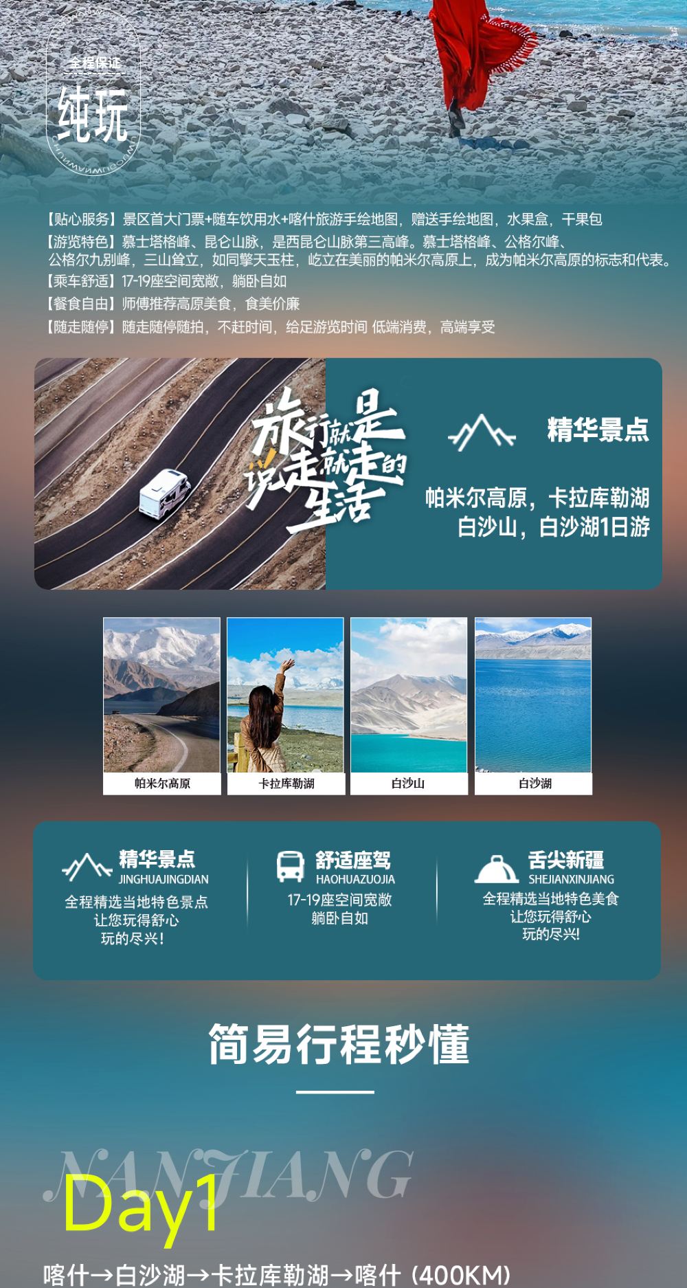 喀拉庫勒湖景區+帕米爾高原+白沙山-白沙湖景區一日遊免費接送