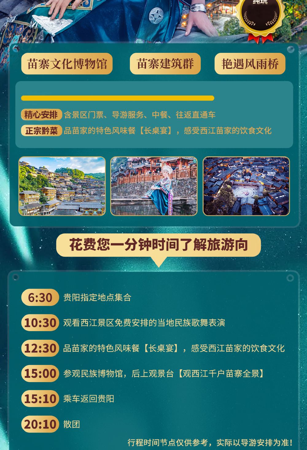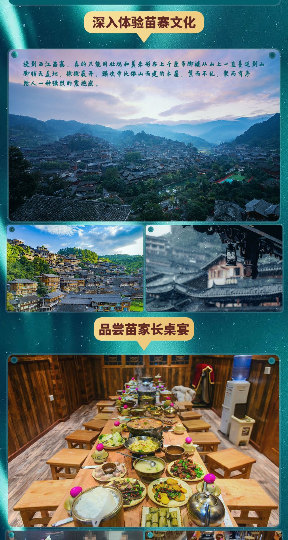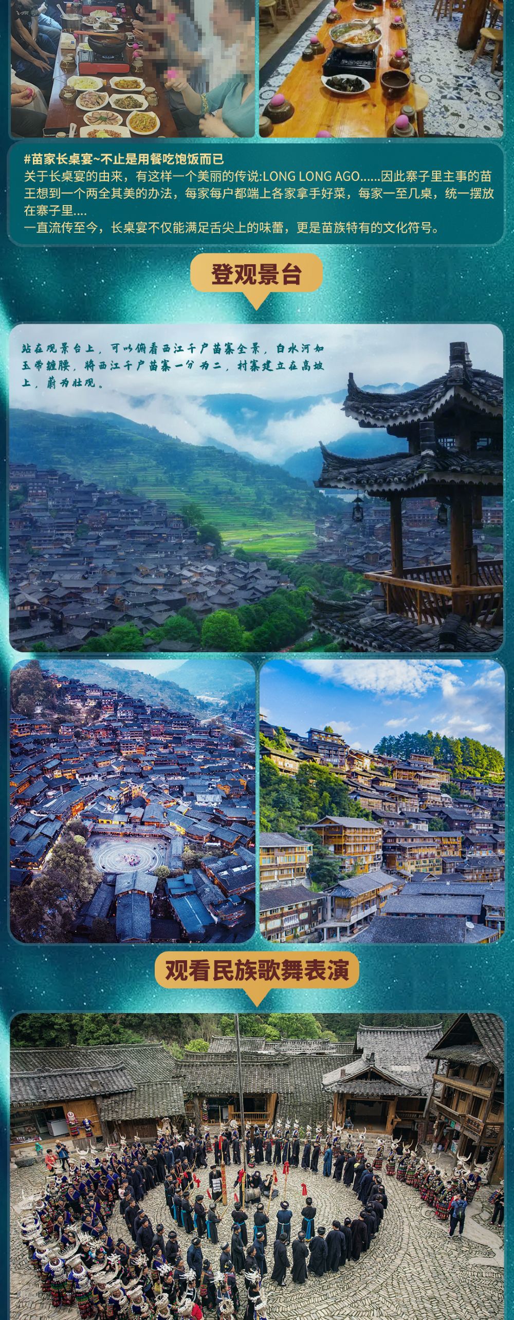 - 【精心安排】品嚐苗族特色——長桌宴;體驗苗族人民的熱情——高山流水。