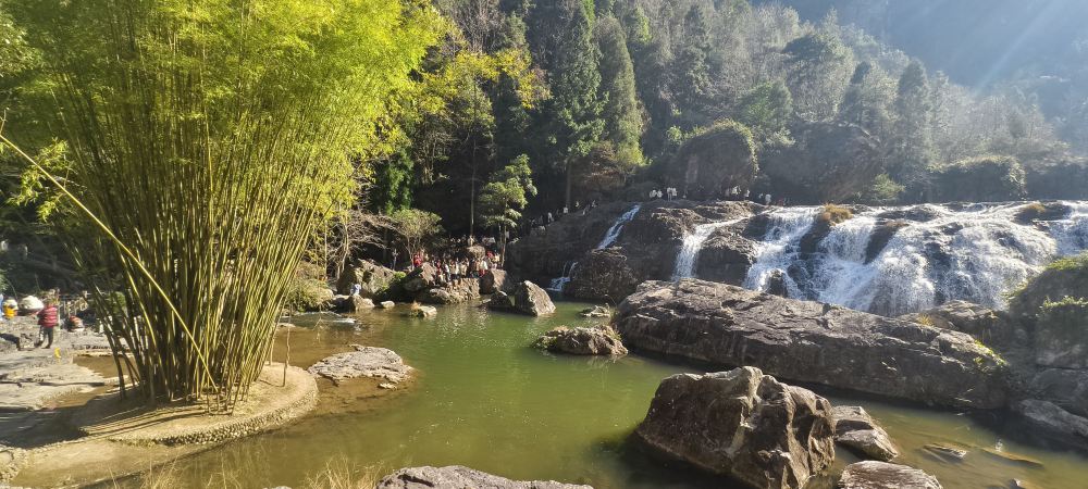乘景區小交通 百丈漈景區需轉乘景區交通車(類似巴士)前往,單程需自費15元/人,每次乘搭落車時請攜帶好隨身物品