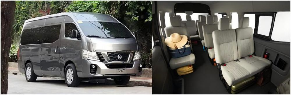 ▲14座車。使用NISSAN PREMIUM VAN或同級別嘅車輛。可乘坐10人同10個行李箱。無行李箱,則可以乘坐13人。