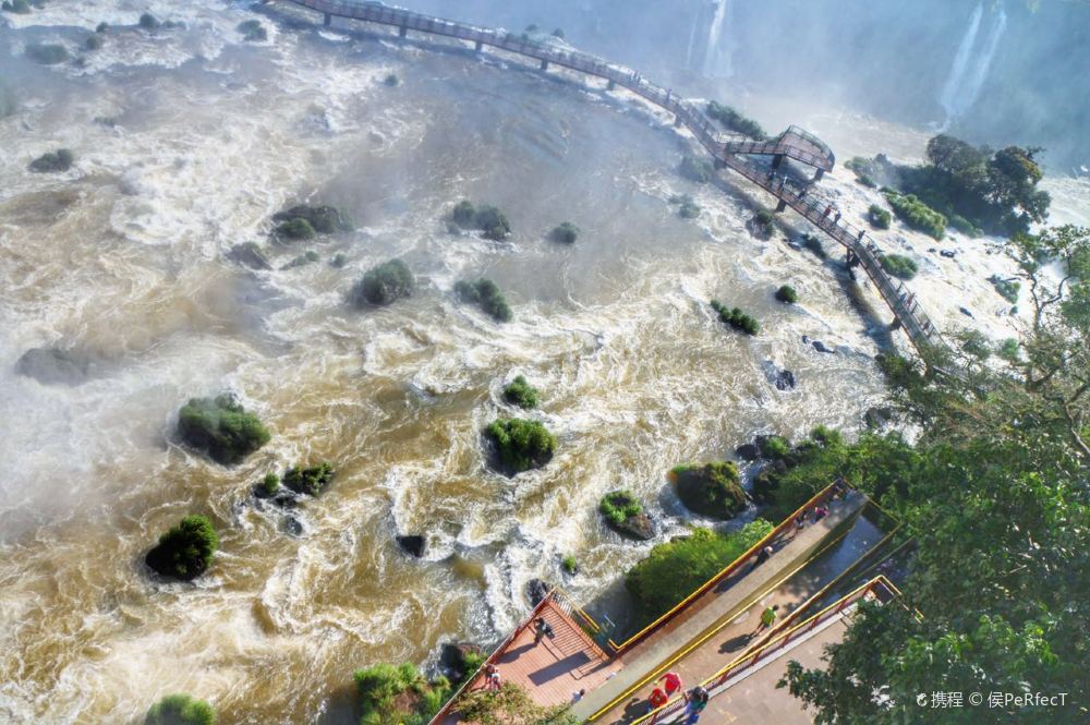 巴西一側以不同視角展現瀑布的壯觀。沿著步道前往瀑布沿線的多個觀景台。感受「魔鬼喉嚨」的全景視野。在指定地點下車