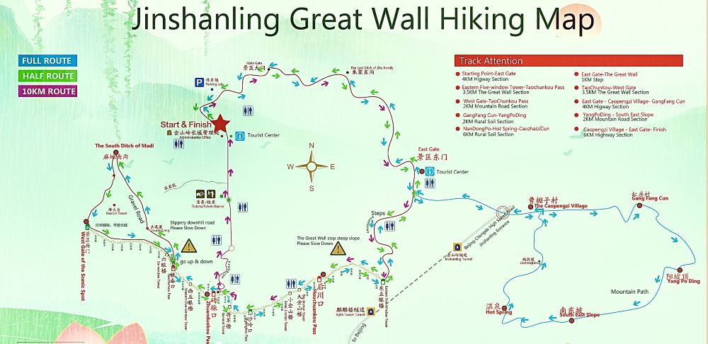 - 路線: 由金山嶺長城正門(主入口)出發,沿著標示清晰的環形路線前行,途經多座著名敵樓,最後無需折返即可回到正門。