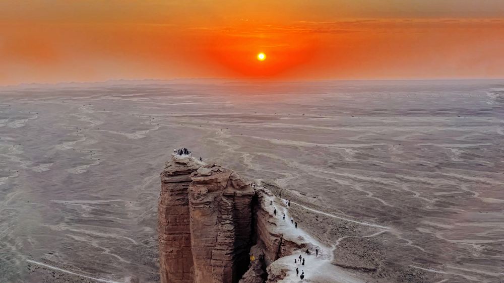 沙地阿拉伯的壯麗奇觀! 位於圖崴山脈邊緣,陡峭的懸崖落差高達300米,俯瞰廣袤無垠的沙漠,彷彿置身世界盡頭,是徒步、露營和觀賞日落的地點