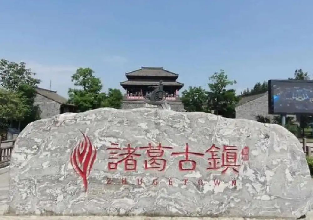 ▲ 諸葛古鎮景區,由勉縣武侯祠、馬超墓、諸葛古鎮主園區、《出師表》實景演出、諸葛水城、陝旅青舍精品客棧、360極限飛球 、歡樂大世界遊樂園組成。以諸葛亮八卦陣為佈局理念;以象徵八卦陰陽的一條水街、一條旱街為主要人行動線;八卦廣場、孔明燈廣場、五丈原廣場連接起古鎮的文化動線;以諸葛武侯出將入相、南征北伐、波瀾壯闊的一生為線索,通過山東沂南民居、湖北襄陽民居、四川巴蜀民居、雲南吊腳樓、關中四合院、漢代官式建築、徽派建築七種建築形態;隆中四傑、三顧茅廬、華容道、錦囊妙計、舌戰群儒、水八陣、借東風等二