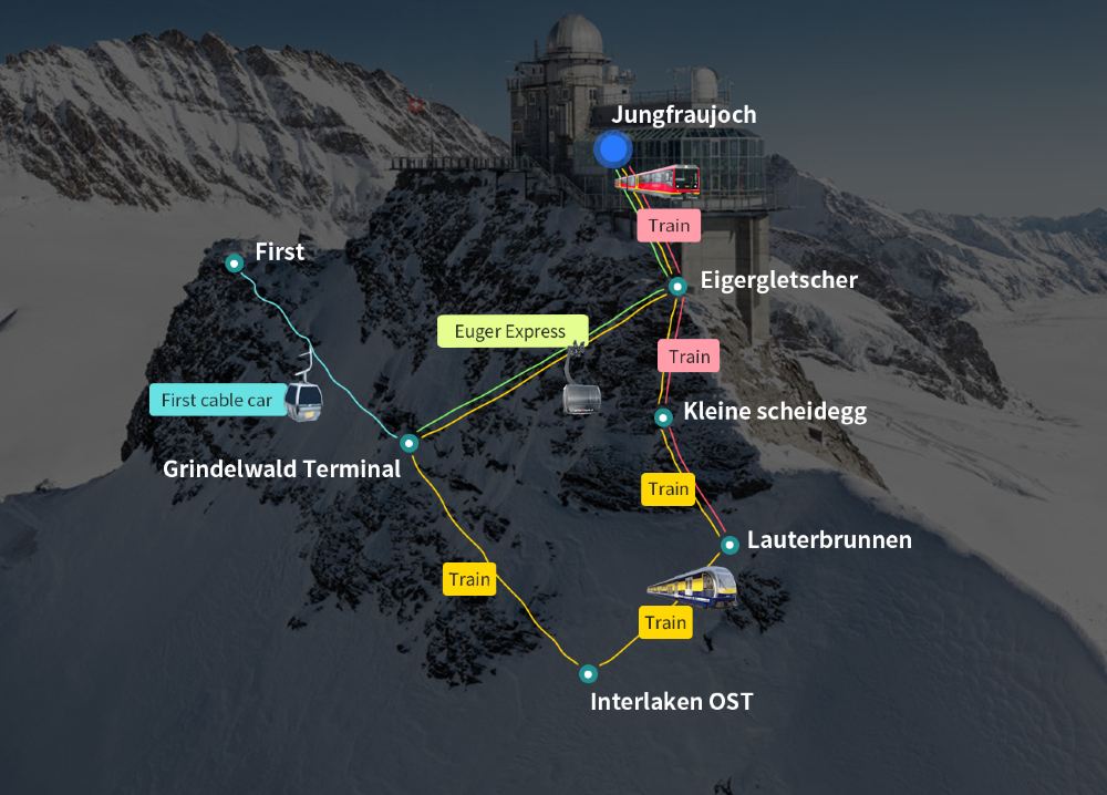 -為您解憂:少女峰火車票路線非常複雜,導遊將帶領您一同遊覽,不錯過任何一班列車。