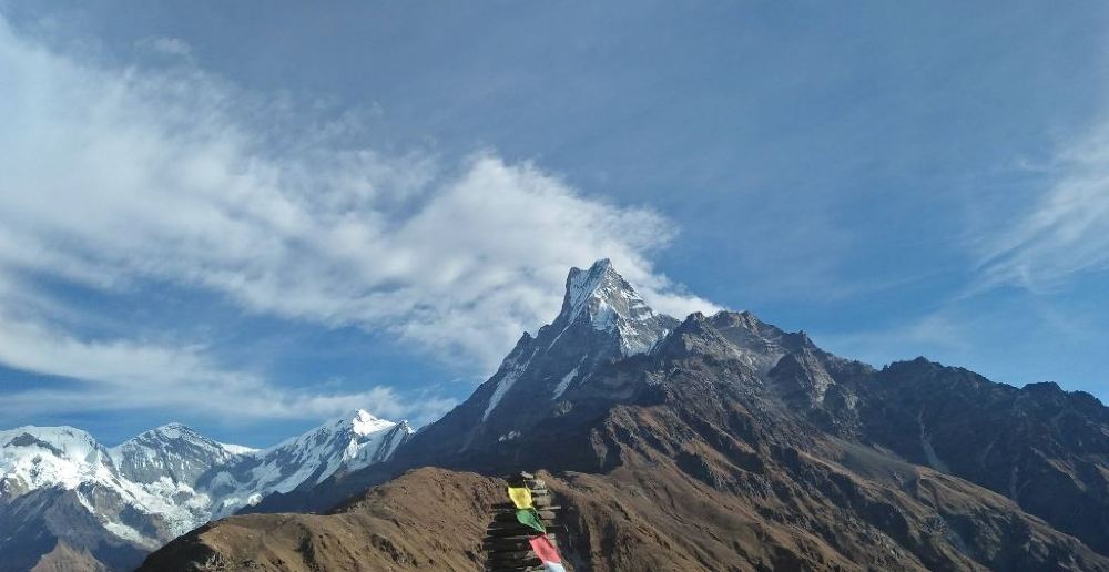 沿著一條孤寂小徑前行,這裡沒有村莊,沒有人潮喧囂,只有未經雕琢的大自然以它緩慢的節奏呼吸著。海拔8091米的安納普爾納峰、5553米的瑪迪喜馬爾峰、6443米的亨丘利峰,以及6993米的魚尾峰,這些雪峰巨人在流雲間若隱若現,彷彿只在瞬間揭開它們的神秘面紗。