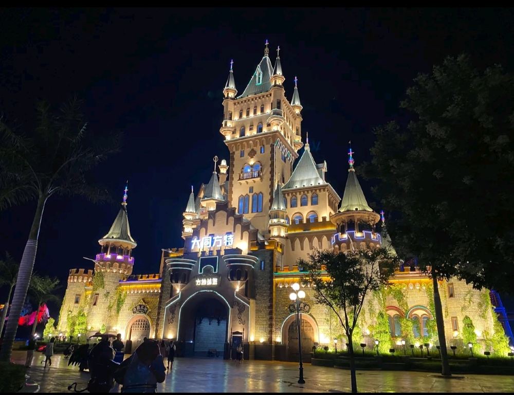 ▲ 夜晚的方特猶如一顆鑲嵌在城市中的璀璨明珠,燈光交織成夢幻的網,將整個園區籠罩在一片絢麗的色彩之中