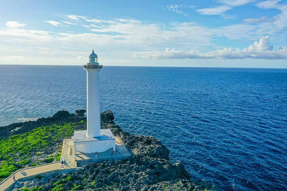 ▲ 沖繩殘波岬位於沖繩縣中部的讀谷村一處,是當地引以為豪的日本數一數二的觀光景點。這裡不但有延續兩公里,高30公尺的斷崖絕壁,同時也因是沖繩本島夕陽降落的地方而聞名。力道強勁的海浪撞上懸崖,白色的飛沫與洶湧的海浪看起來魄力十足。另外附近建造的「殘波岬公園」內還有「白色的大型燈塔」,可以360度飽覽東中國海。