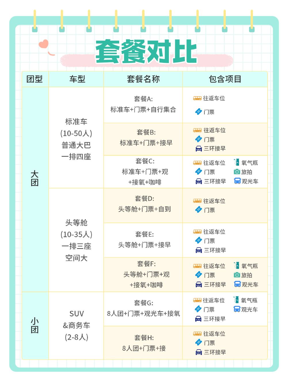 G-8人團+票+觀+接氧+咖啡 | 車輛(車型待確認) | 普通話 | 提供去程接送 | 拼團 | 8位旅客 | 只提供司機 | 不包括餐膳 | 回程於指定地點解散