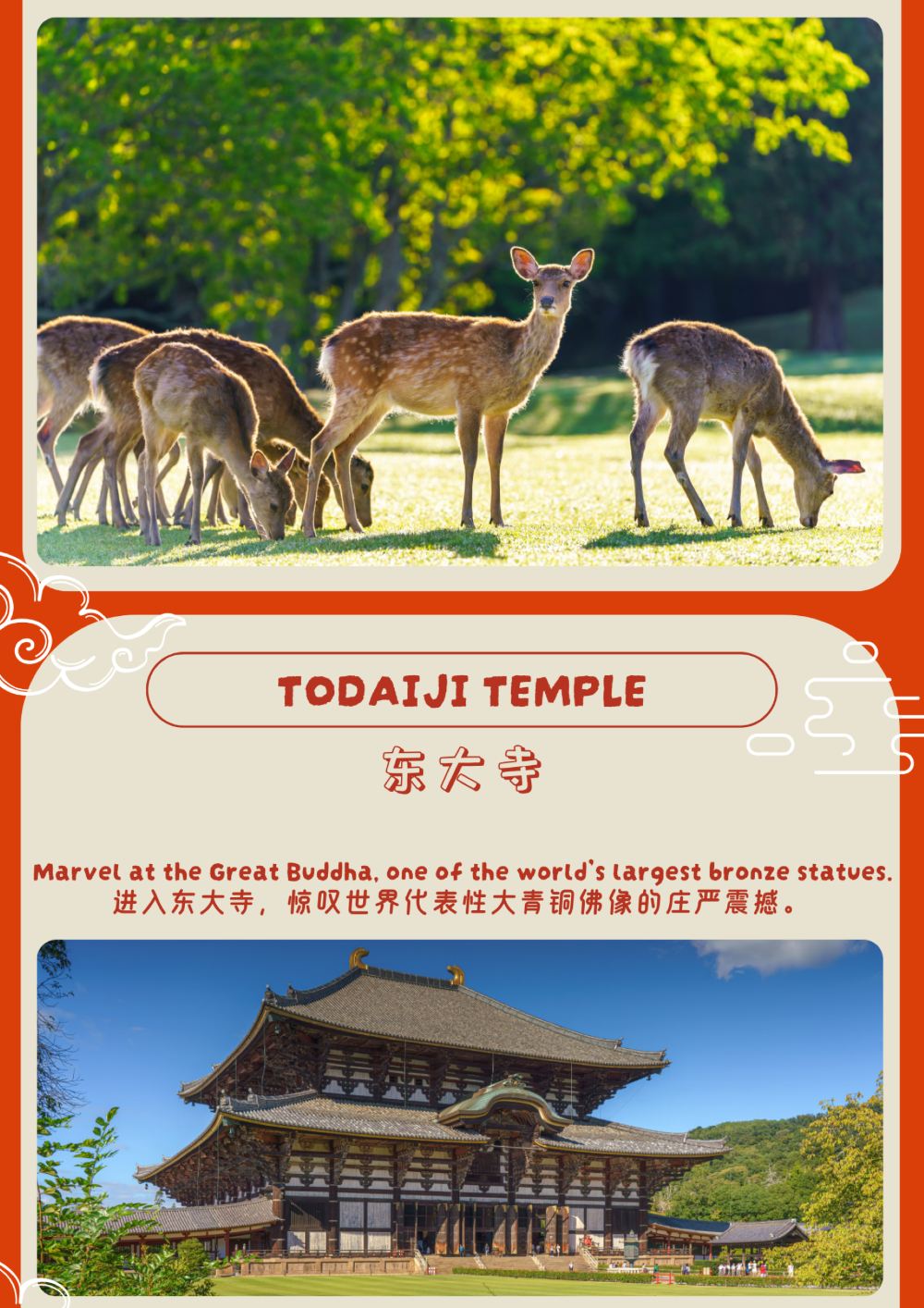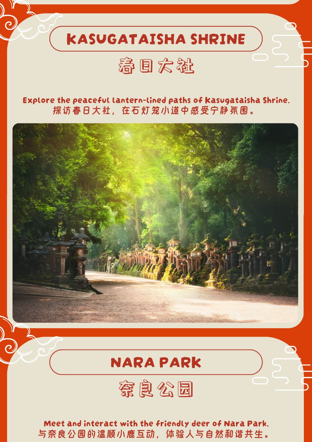 - 感受奈良風情 | 走進奈良公園,與溫順的小鹿親密互動,體驗手餵鹿仙貝的樂趣,感受人與自然的和諧共生。