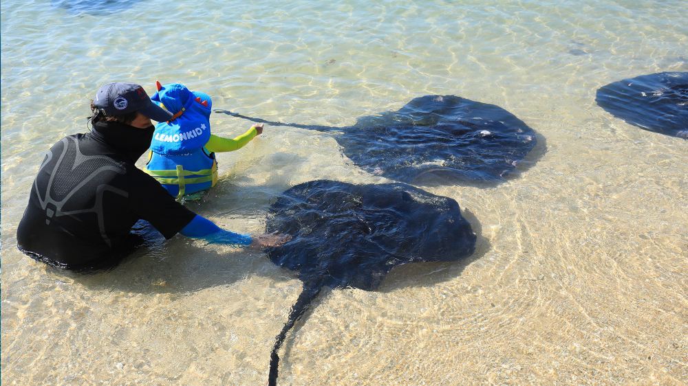 ▲ 分界洲島的餵魔鬼魚活動,學名魟魚,以微笑面容著稱,遊客可與其親密互動,體驗感受魔鬼魚溫和可愛的一面。