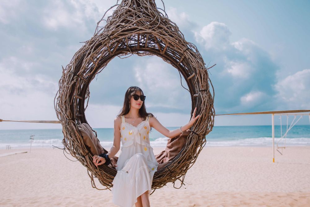 ▲ 陵水呆呆島毗鄰南灣猴島,是中國獨有熱帶濱海「發呆主題」景區。這裡保持著原始生態,有椰林鞦韆、復古沙灘車等拍照打卡點,是情侶約會、親子家庭和文藝青年的治癒系秘境