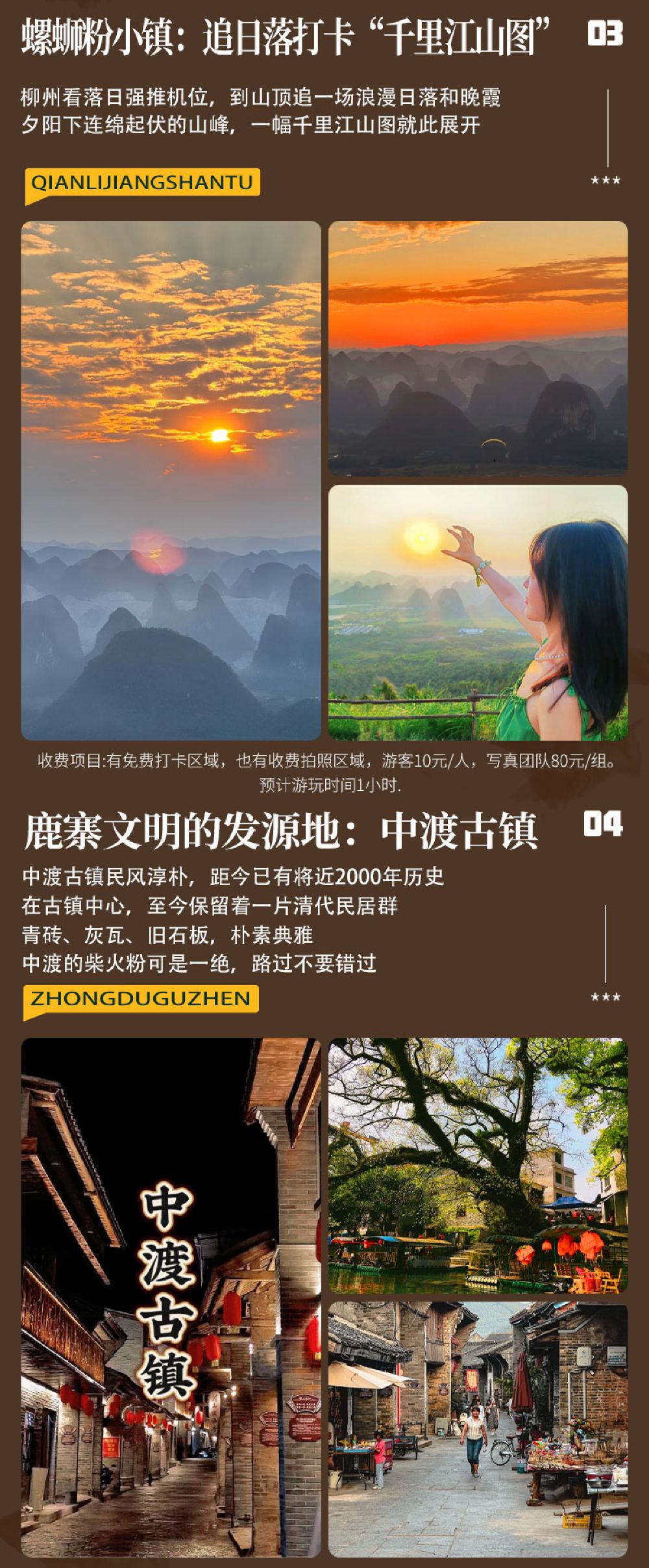 - 中渡古鎮,距今已有2000多年歷史,它是鹿寨文明的發源地,歷史上因地理優勢和便利的水運條件而繁榮