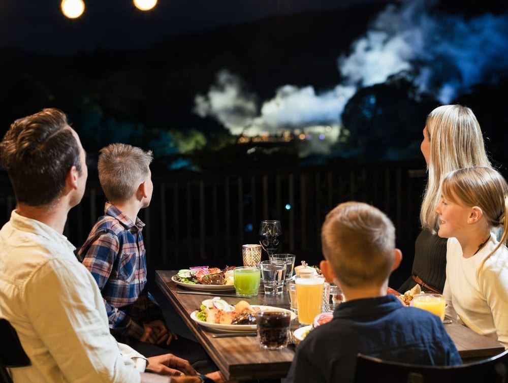 在我們的Pātaka Kai餐廳和酒吧享用令人垂涎的自助餐之後,接下來是令人振奮的毛利Haka表演。在這之後,如果喜歡,可以步行回到有名的Pōhutu間歇泉地熱仙境觀賞夜景。