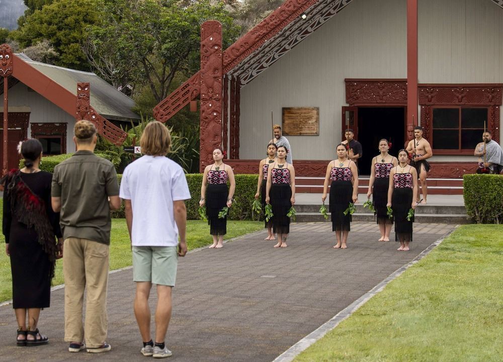 新西蘭毛利Haka戰舞文化表演在我們雕刻精美的Aronui a Rua會議廳舉行。表演包括pōhiri(傳統歡迎儀式)、waiata(歌曲)、mōteatea(傳統吟唱)、poi以及haka毛利戰舞。