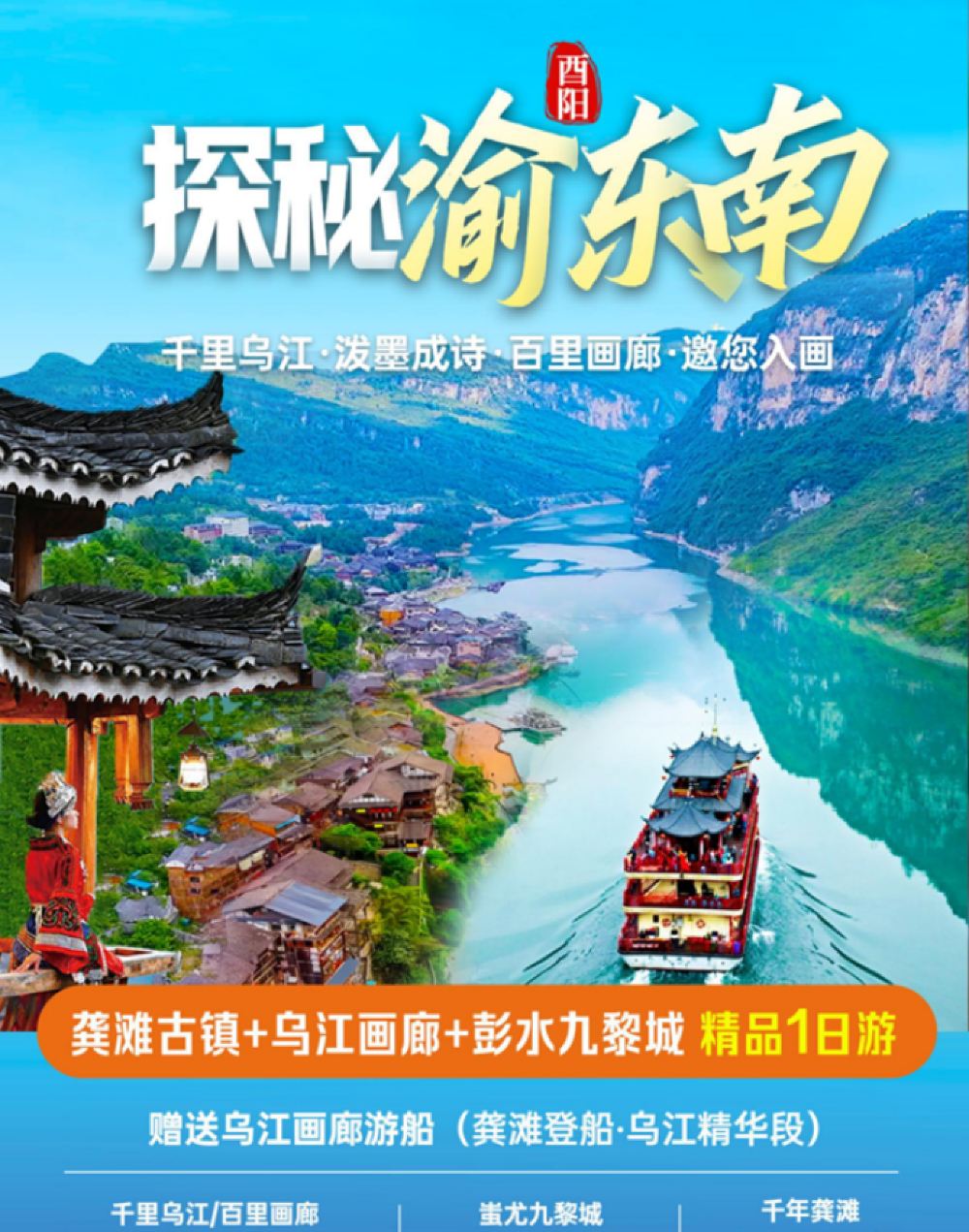 龔灘古鎮+烏江遊船(龔灘登船精華段)+蚩尤九黎城純玩一日遊