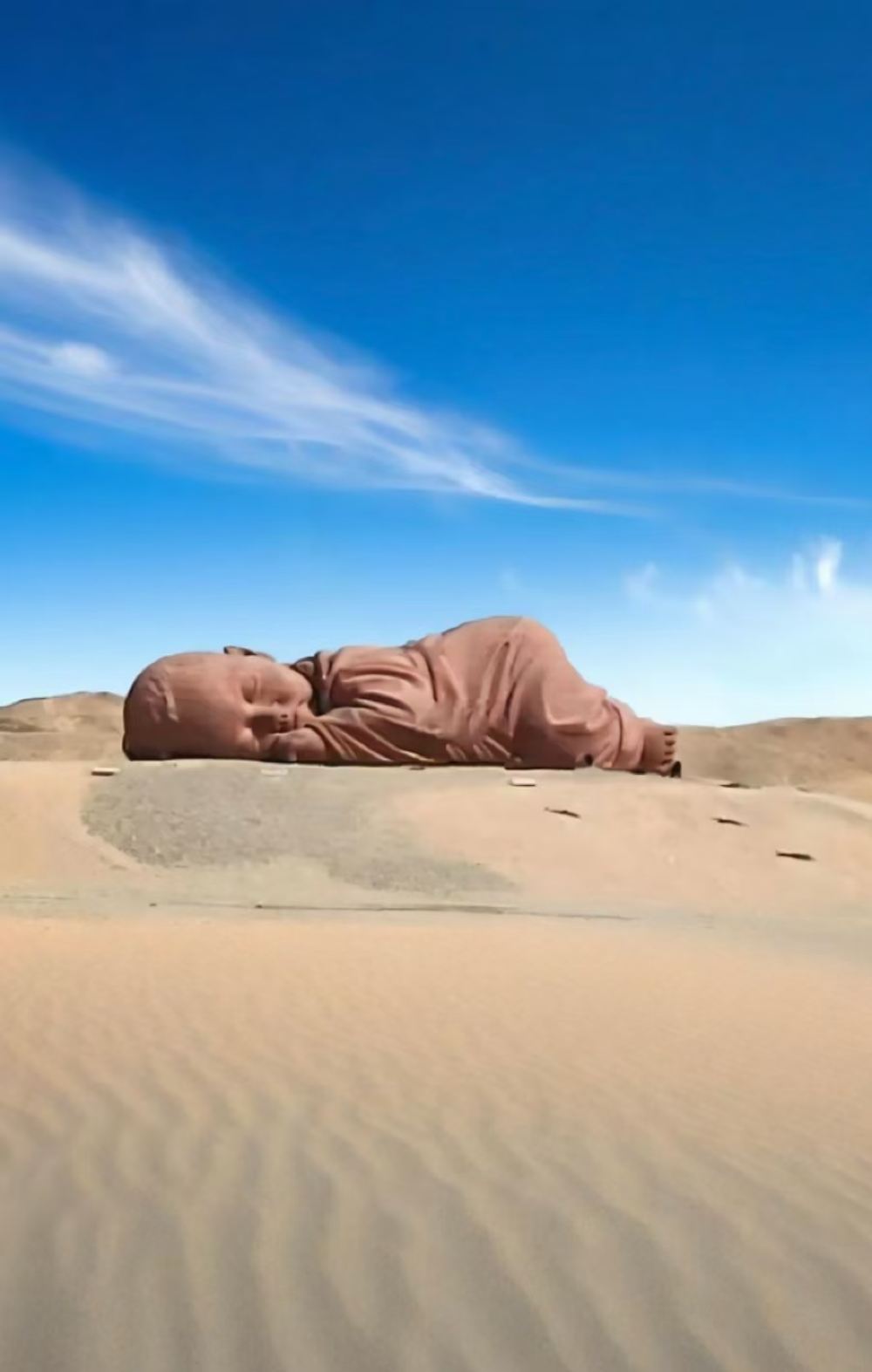▲ 敦煌網紅打卡點「大地之子」,巨型雕塑與戈壁荒漠融為一體,隨手一拍都係大片。