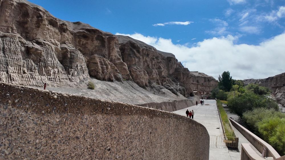 ▲ 戈壁崖壁上的榆林窟,作為「莫高窟姊妹窟」,千年石窟靜靜矗立,每一道石紋都鐫刻著絲路文明的密碼。