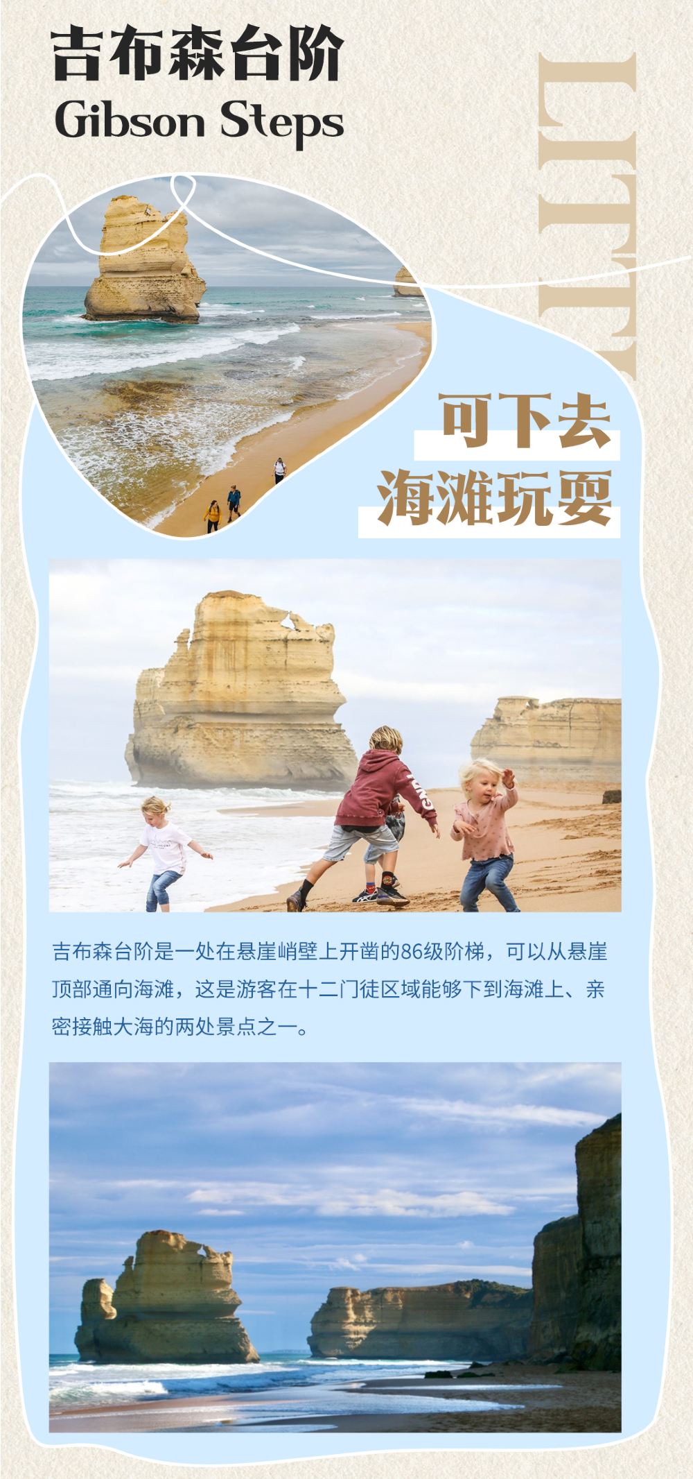 - 南冰洋沿岸荒涼空曠,海風陣陣,大洋路在海邊懸崖間蜿蜒伸展,景色十分壯觀。