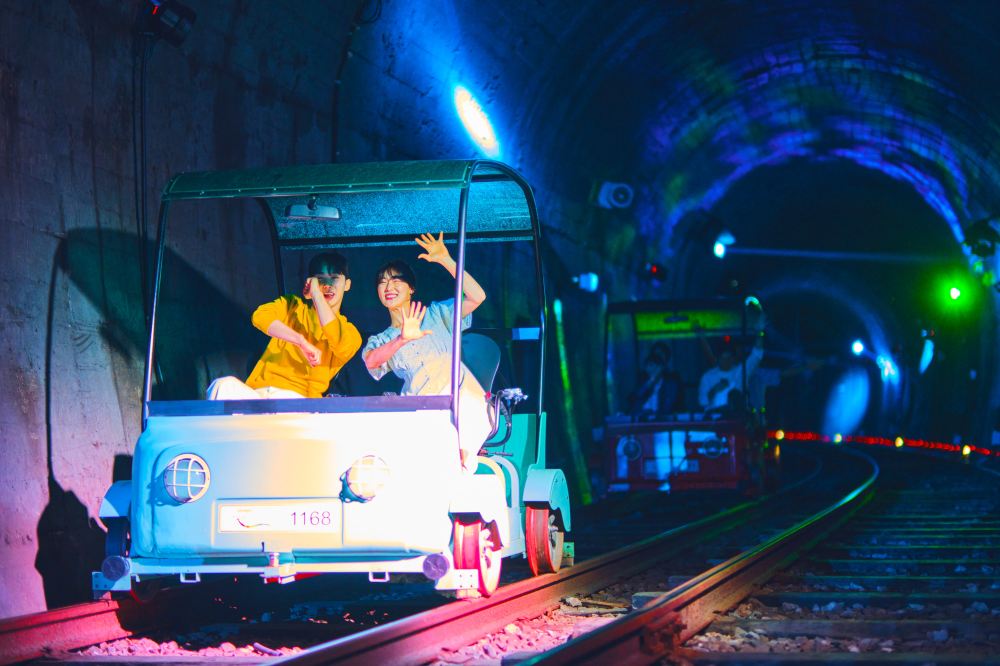 - 江村鐵軌自行車 沿北漢江舊鐵道騎行,欣賞山景、水景,還有炫彩隧道燈光秀,輕鬆又有趣。