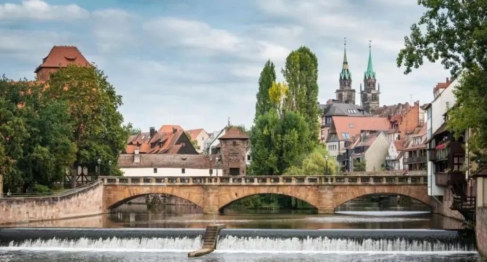 ▲ 紐倫堡的城市風光如畫,河水潺潺流淌,石橋橫跨其上。紅頂房屋錯落有致,綠樹點綴其間。遠處教堂尖頂醒目,在藍天白雲下,展現出中世紀古城的寧靜與美麗,充滿獨特的韻味。