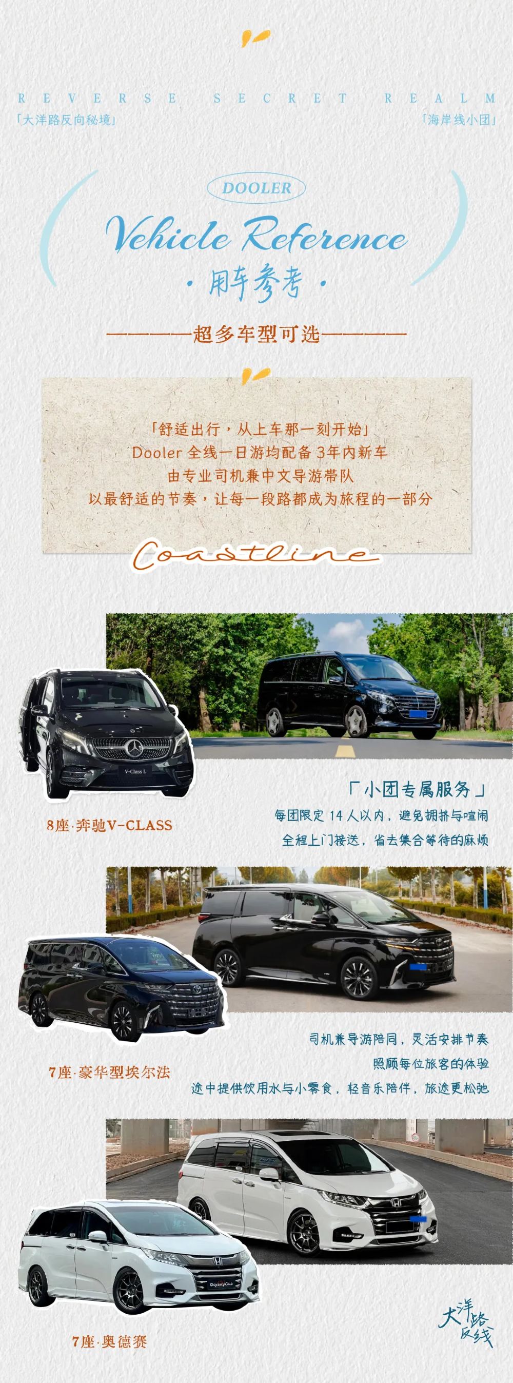- 告別大巴擁擠,尊享靈活舒適。升級乘坐奔馳級商務車(或同級),空間寬敞,旅途更輕鬆,互動更隨心。