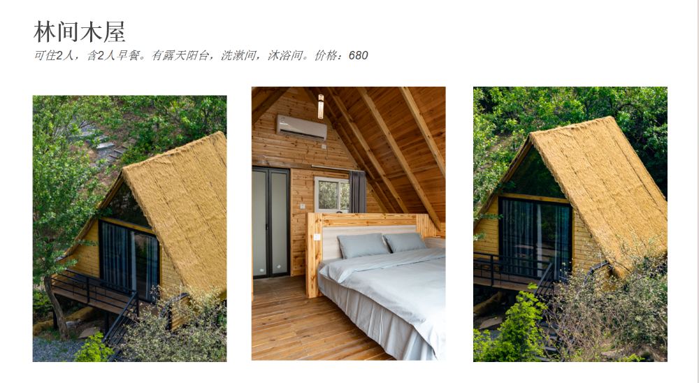 - 林間房(680元/晚):藏於綠意中的小木屋,推窗見林,恍如置身童話世界;