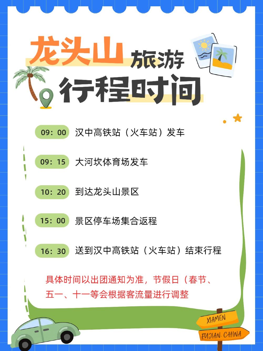 5、節假日會提前出發,具體時間按照出團通知上的時間為準