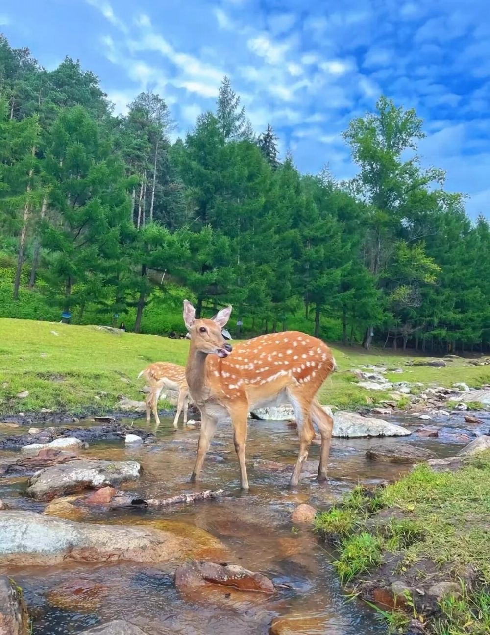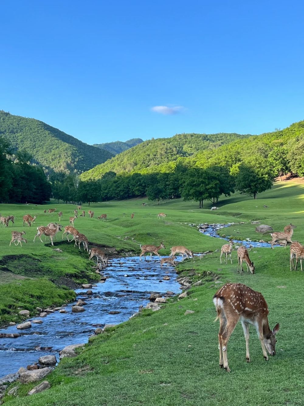 ▲ 這裡四面環山,森林覆蓋率超高,充滿負離子,簡直係天然大氧吧!鹿鳴溪貫穿整個園區,溪水清澈見底,沿住溪邊漫步,感受微風拂面,愜意十足~ 園區內放養咗幾百頭馬鹿同梅花鹿,啲小鹿完全唔怕人,超級溫馴親人!你可以喺門口買啲紅蘿蔔條(亦可以自己預先準備,但注意唔好帶太多)。