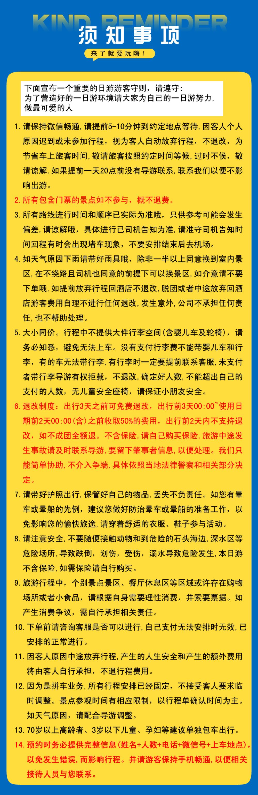 同時請保持電話同WeChat暢通,聯絡不上或遲到的原因概不退換。