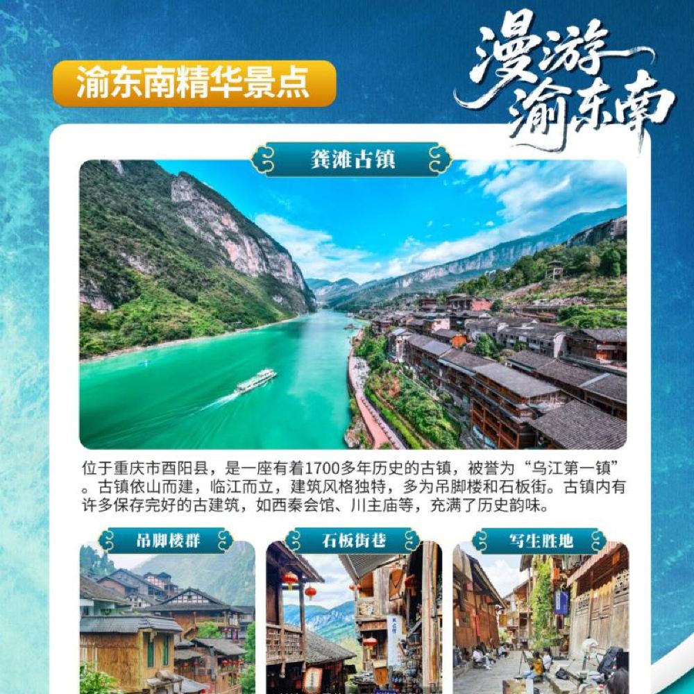 - 經典路線:九黎城+含烏江畫廊遊船+龔灘古鎮