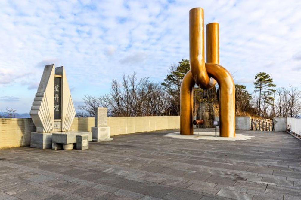 ▲ 在愛妓峰和平公園,臨津江與漢江的匯合處,與北邊僅一江之隔, 地理位置極具歷史與政治意義。公園內的展望台可以清楚眺望北邊的村莊和風景, 親身感受到分裂的現實。 (請注意出發當天必須攜帶您的護照才可進入景點!)