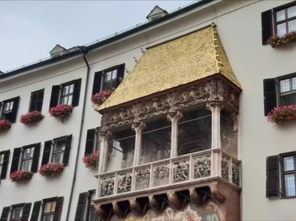 ▲ 黃金屋頂是奧地利因斯布魯克的地標,由神聖羅馬帝國皇帝馬克西米利安一世建於1500年,裝飾著2657塊鍍金銅瓦。陽台上的浮雕刻畫紋章、符號,以及他生活中的其他人物。