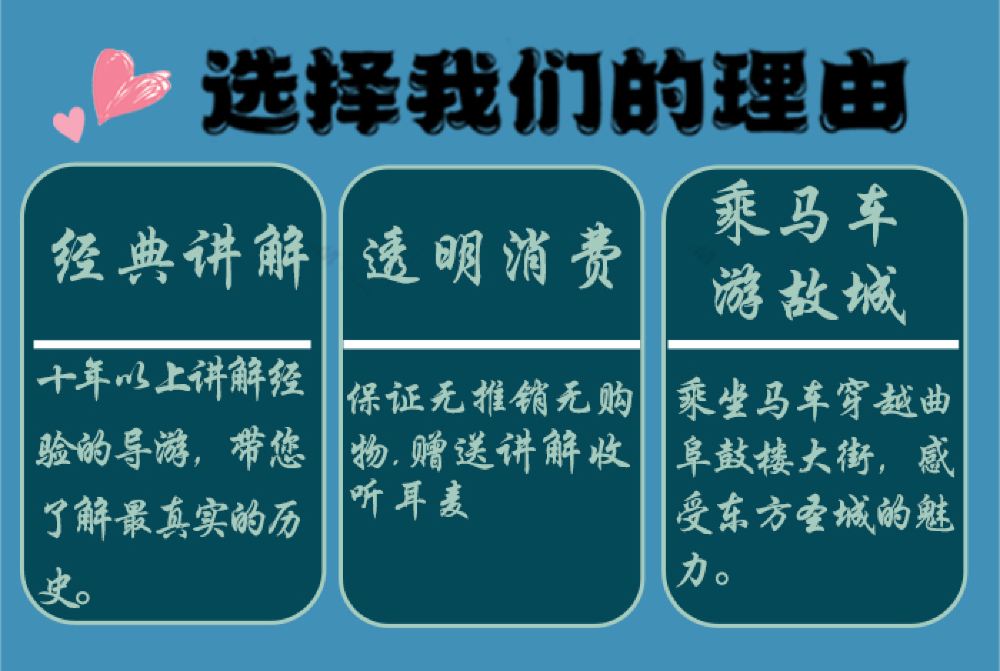 乘車 半日遊行程約3.5小時。萬仞宮牆集合-孔廟-孔府-乘坐馬車-曲阜三孔景區城門結束(此行程不含孔林)。